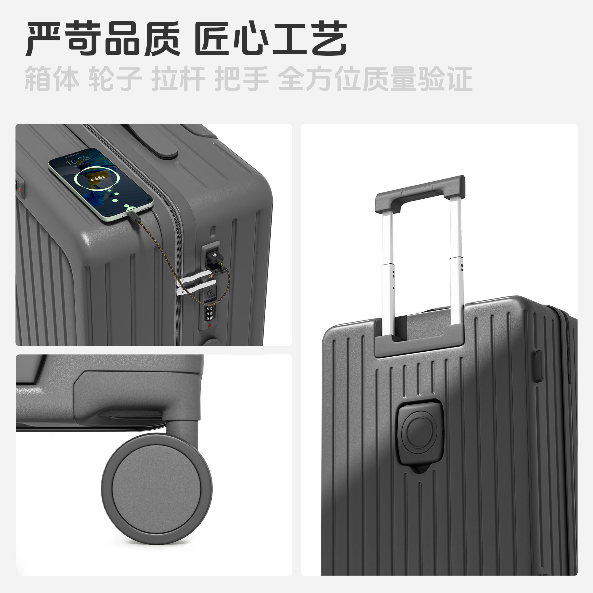 这款20寸小型登机箱专为女性出行设计,轻便小巧,符合多数航空公司登机标准,方便携带。前置开口设计让取放物品更便捷,无需打开主仓即可快速拿取证件、充电宝等随身物品。28寸大容量版本则满足长途旅行需求,分层收纳合理,轻松装下衣物与生活用品。采用高强度PC材质,轻盈抗摔,搭配TSA海关密码锁,安全又省心。顺滑静音万向轮360°灵活转动,推拉省力。无论是短途差旅还是长途旅行,这款多功能行李箱都是理想选择,兼顾实用性与时尚外观,让旅途更轻松自在。