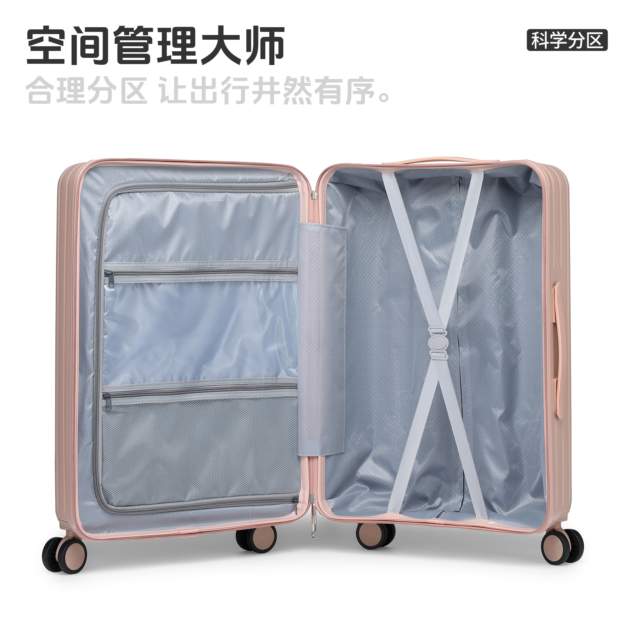 2025年全新推出的前置开口行李箱,集便捷与时尚于一体,专为现代出行设计。20寸小型登机箱轻巧便携,符合主流航空随身行李标准,前置开口设计让取放物品无需完全开箱,安检更高效;24寸大容量款则满足长途旅行需求,内部空间优化,收纳井然有序。采用高强度PC材质,轻盈抗摔,搭配TSA海关密码锁,安全无忧。360°静音万向轮顺滑静音,铝合金拉杆稳固耐用。简约流线外观,多色可选,兼顾实用与美感,是商务差旅与休闲出行的理想伴侣。