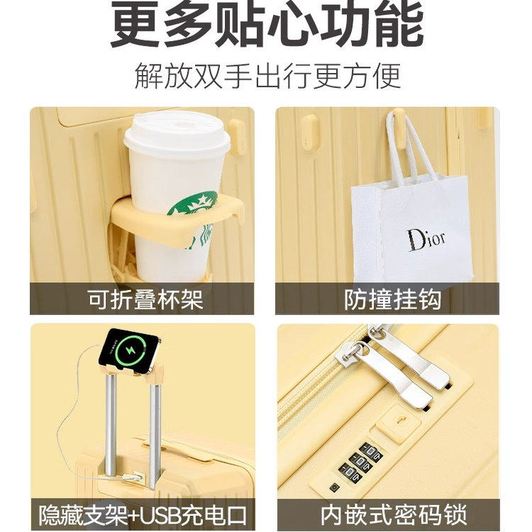 天前置开口宽拉杆行李箱女多功能24寸耐用密码旅行皮箱子大容量26男