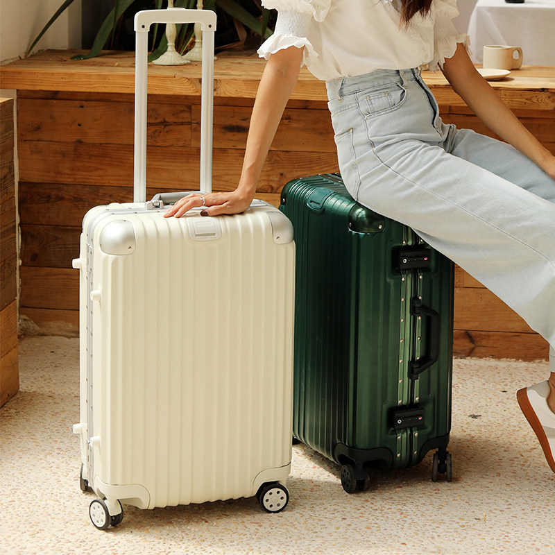 这款24英寸潮流拉杆箱,专为追求时尚的年轻男女设计,融合ins网红元素与现代实用功能。采用坚固铝框结构,兼具轻盈与抗压性,20寸登机箱尺寸完美适配学生出行与短途旅行需求。简约大气的外观搭配多色选择,轻松拍出高级感旅行大片。360°静音万向轮顺滑推行,TSA海关锁保障安全,内部合理分区收纳更便捷。无论是校园通勤、周末出游还是商务差旅,这款高颜值又实用的行李箱都能成为你的出行亮点,尽显个性与品味。