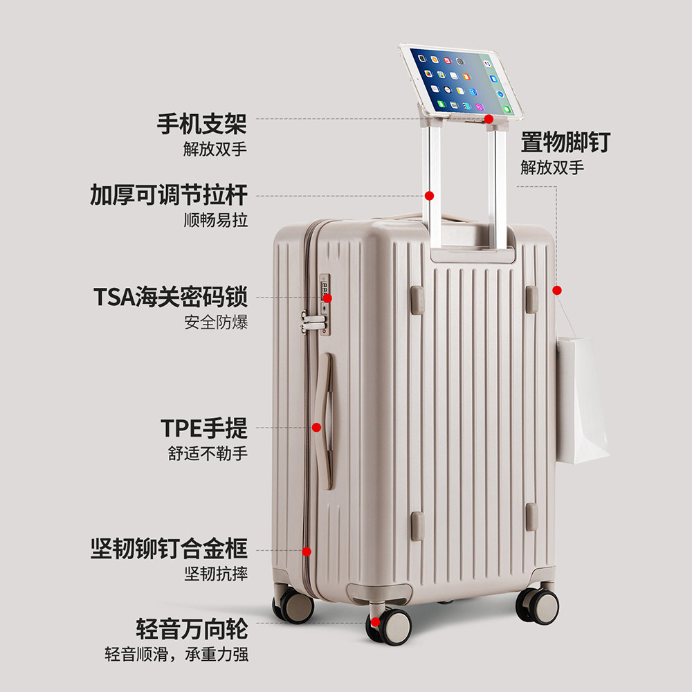 天前置开口宽拉杆行李箱女多功能24寸耐用密码旅行皮箱子大容量26男