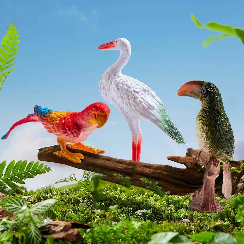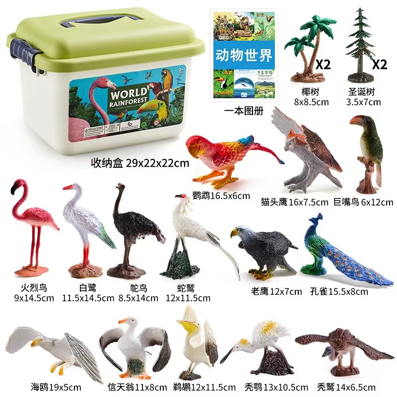 淘儿童玩具仿真动物模型鸟类套装大嘴鸟鹦鹉鸵鸟孔雀小鸟火鸡男孩女