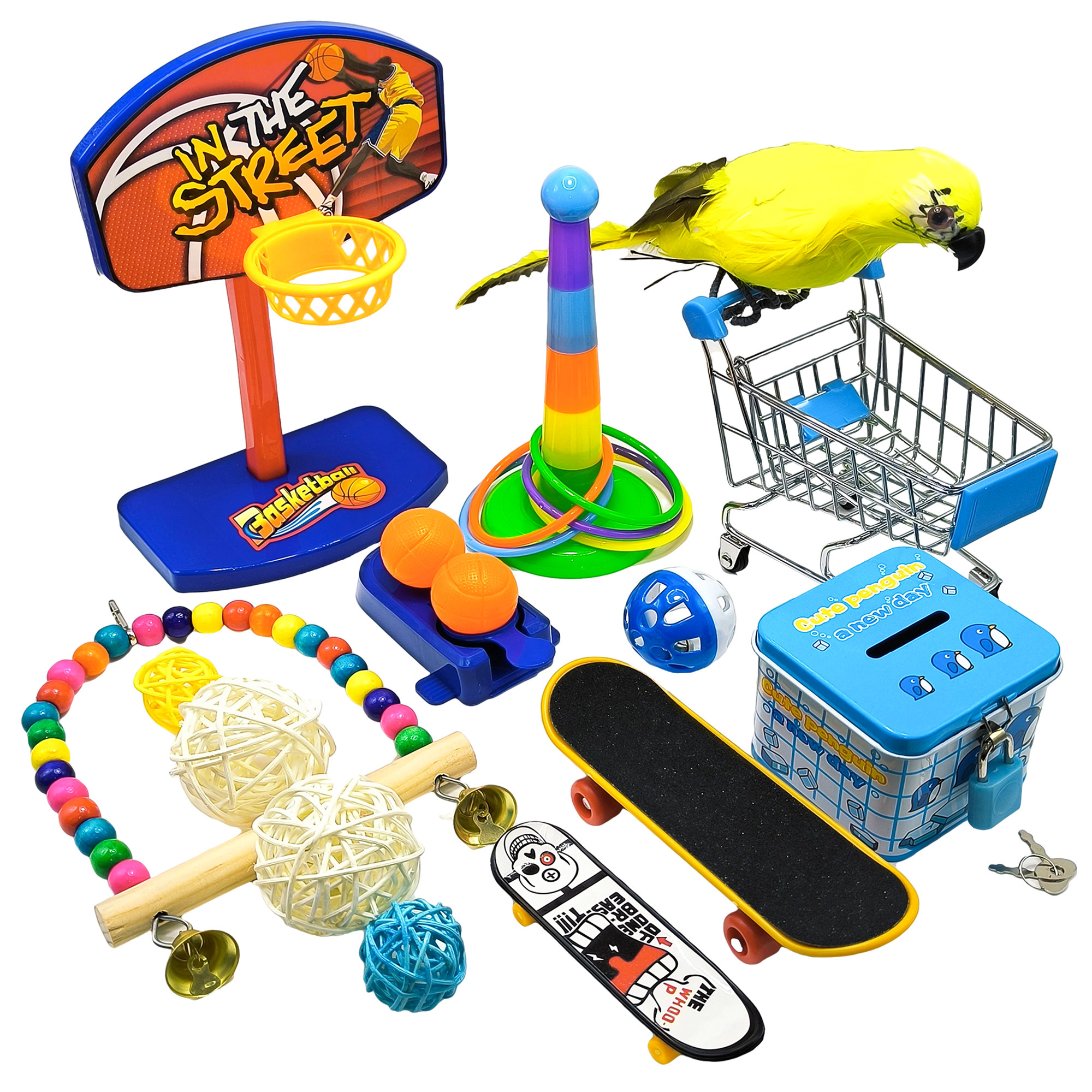 这款鹦鹉玩具全套专为虎皮、牡丹、玄凤等中小型鹦鹉设计,集开发智力、锻炼身体与丰富生活于一体。套装包含多款互动道具,如彩色秋千、攀爬绳梯、益智取食器、铃铛摇铃及天然木块啃咬玩具,材质安全环保,无毒无味,呵护爱鸟健康。通过啃咬、攀爬、探索和取食挑战,有效锻炼鹦鹉的协调能力与思维能力,预防无聊引发的啄羽等不良行为。色彩鲜艳、结构多样的组合设计,不仅能激发鸟类好奇心,还能增强人鸟互动乐趣,是提升宠物鹦鹉生活品质的理想选择,让爱鸟在快乐中健康成长。