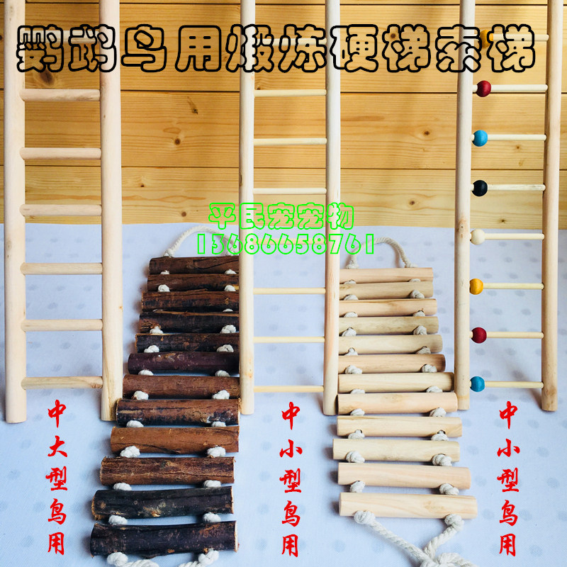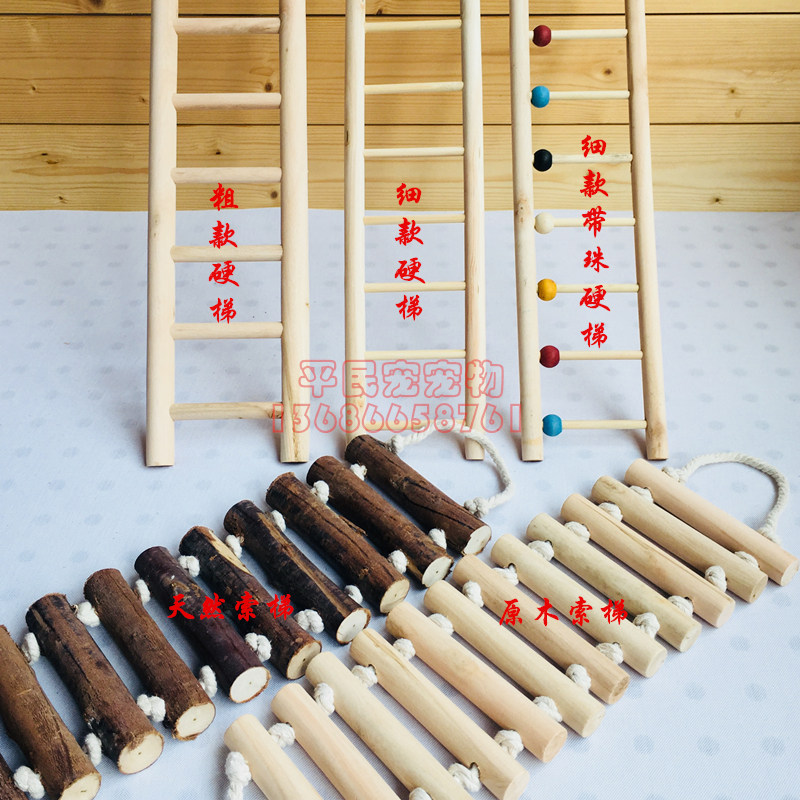 淘宝鸟木梯 鸟类木楼梯 鹦鹉宠物爬梯 鸟玩具 实木梯子木站杠棉绳索梯
