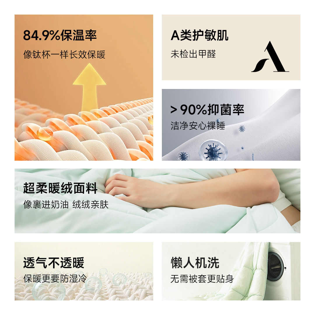 【新品上市】8H超柔A类冬被,精选优质抗菌纤维填充,通过国家A类婴幼儿安全标准,亲肤柔软,安全无刺激。采用立体绗缝工艺,有效固定被芯,不易结团跑棉,持久蓬松保暖。四季皆宜,加厚设计适合秋冬使用,春秋可搭配被套调节温度,一被多用。双人加大尺寸,满足家庭需求。面料细腻透气,吸湿排汗,整夜干爽舒适。抗菌科技有效抑制细菌滋生,呵护家人健康睡眠。8H专注睡眠品质,让每一晚都温暖安心。新品首发,限时优惠,开启健康舒适睡眠新体验。