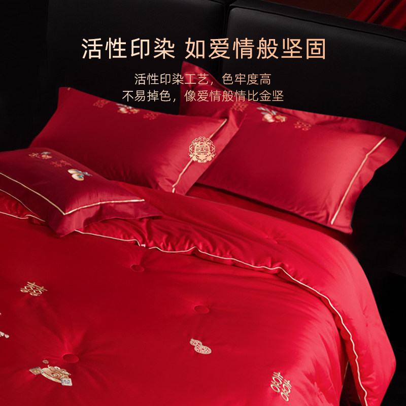 天猫斯得福结婚房婚庆大红色喜被四季全棉春秋被子被芯纯棉婚嫁用品冬