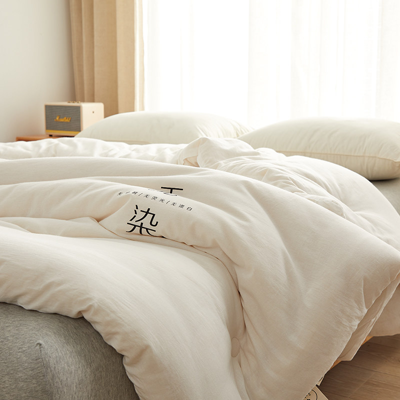 无印良品全棉被子采用100%新疆优质长绒棉填充,亲肤透气,柔软舒适,四季皆宜。春秋款轻盈保暖,适合换季使用;冬被加厚设计,锁温性能优异,带来温暖安眠体验。被芯内外全棉材质,无荧光剂、无异味,安全健康,尤其适合敏感肌肤人群。简约素雅的设计风格,契合无印良品自然质朴的生活理念。尺寸适中,非常适合大学生宿舍单人床使用,也适用于空调房,避免着凉。易打理,可机洗晾晒,经久耐用。无论是日常居家还是宿舍生活,这款被子都以高品质和实用性,为用户提供舒适安心的睡眠体验。