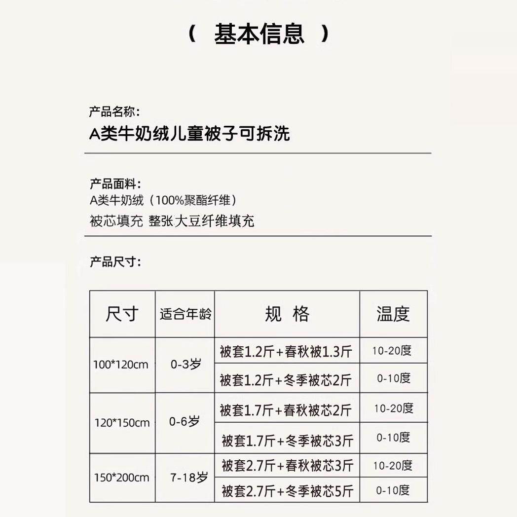 天猫儿童珊瑚绒牛奶绒秋冬被子宝宝幼儿园午睡棉被加厚被套被芯可拆洗
