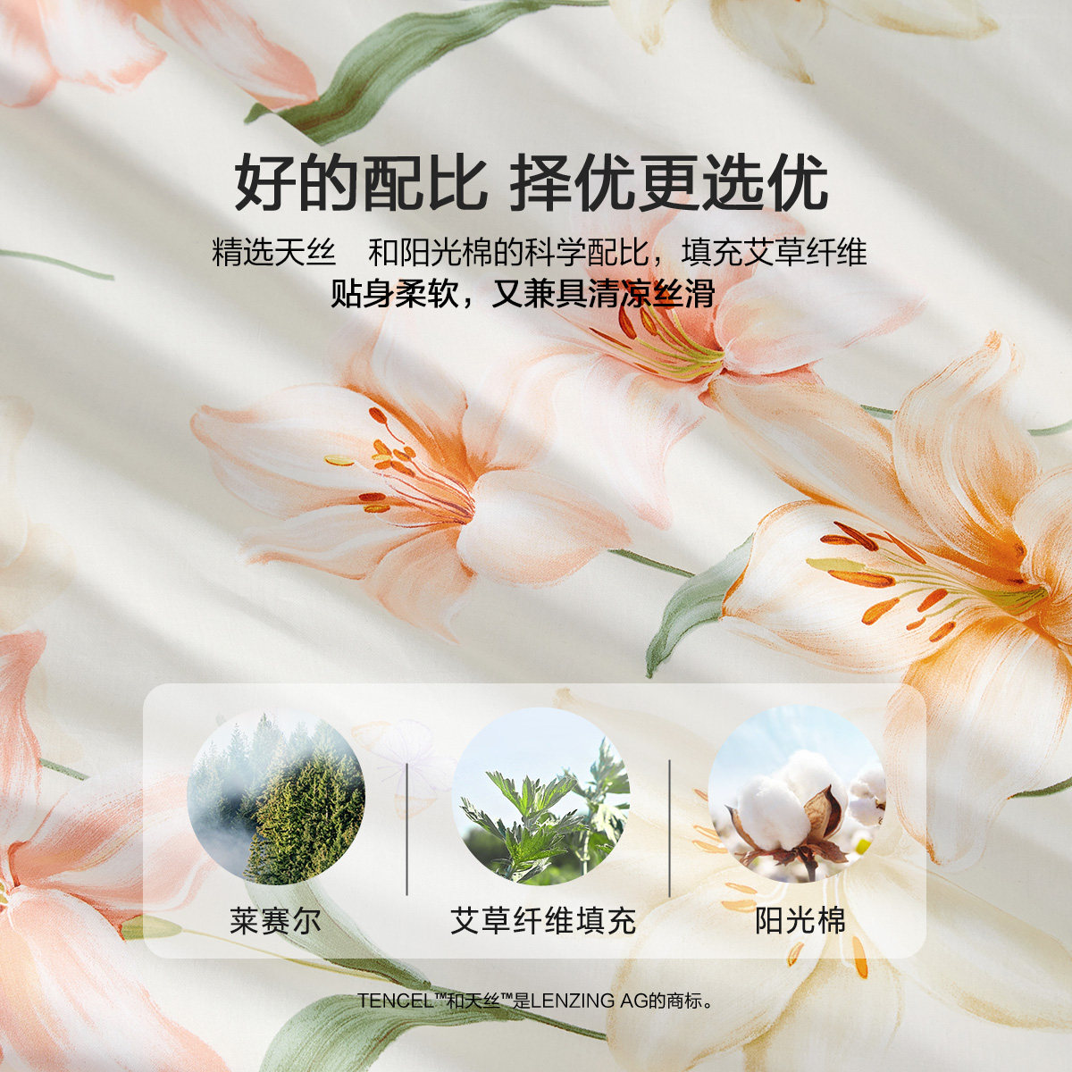 天猫水星家纺天丝™棉夏被莱赛尔艾草抑菌凉感被子A类可水洗空调被芯