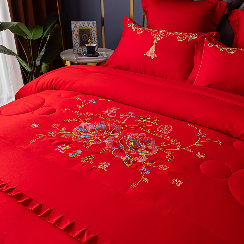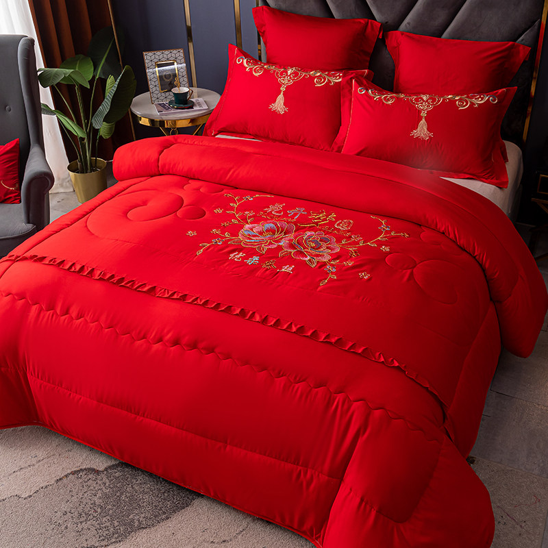 天猫婚庆被大红刺绣喜被婚被春秋被芯加厚冬被子结婚房陪嫁中式绣花被