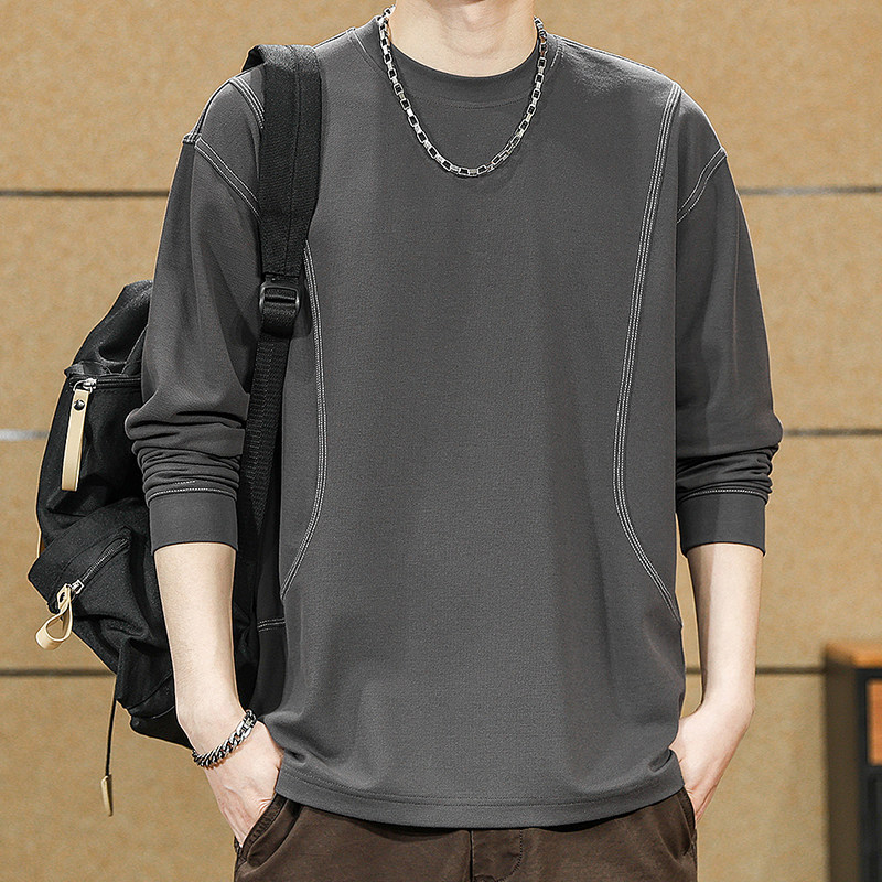 男士长袖t恤圆领青年男冰丝打底衫 薄款纯色休闲外穿秋衣体恤男潮