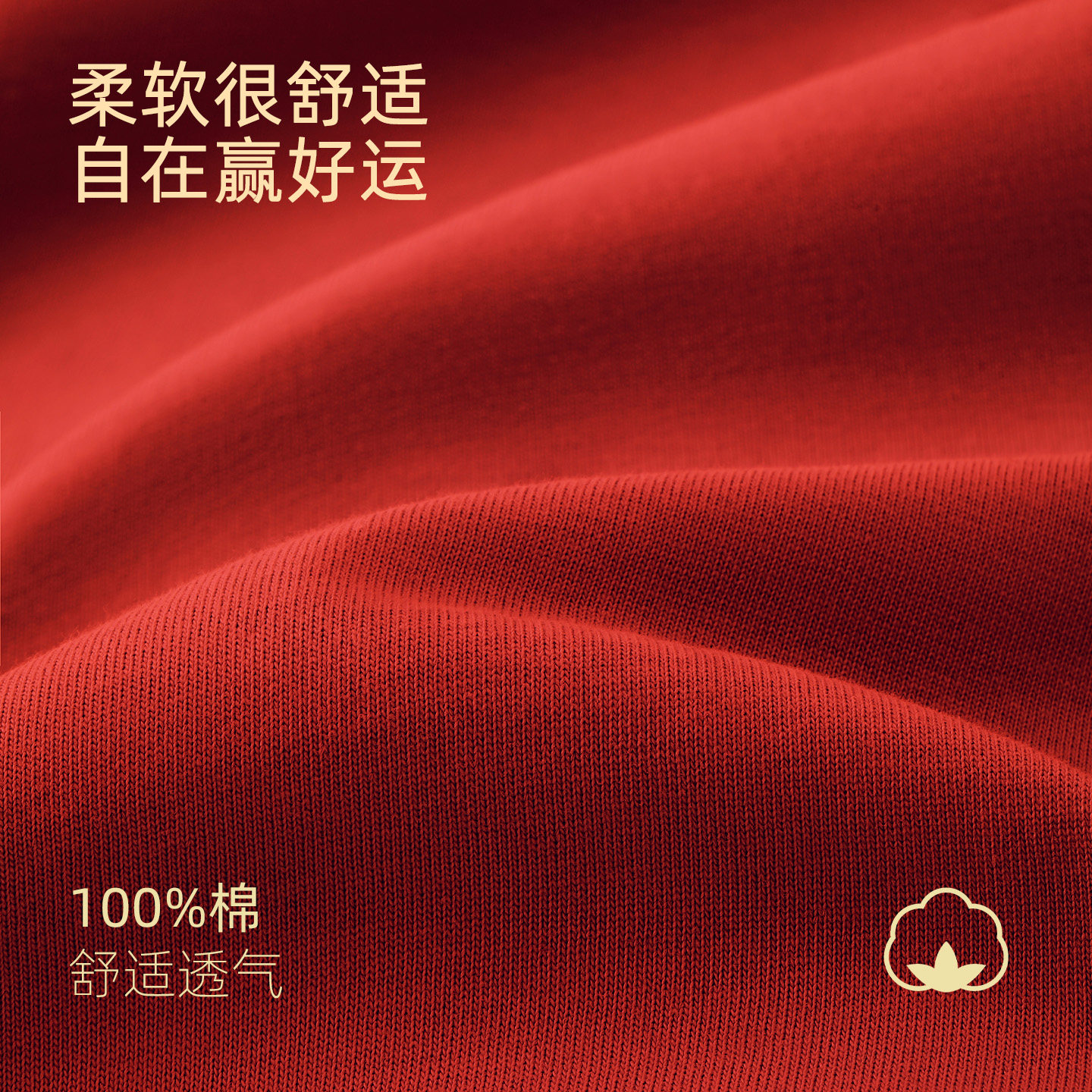 棉致马年2026本命年新年礼物红色纯棉短袖t恤男拜年喜庆年会衣服