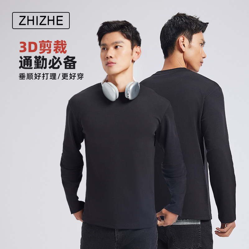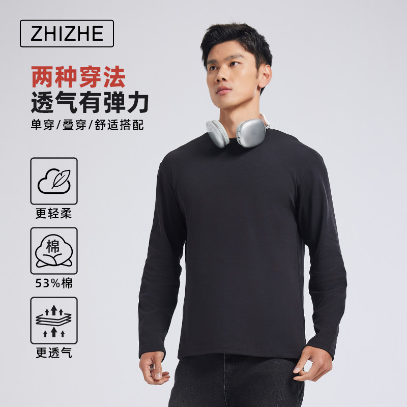 淘男士长袖t恤圆领青年男冰丝打底衫 薄款纯色休闲外穿秋衣体恤男潮