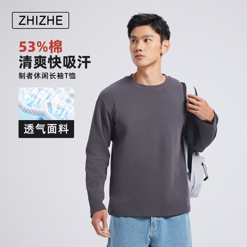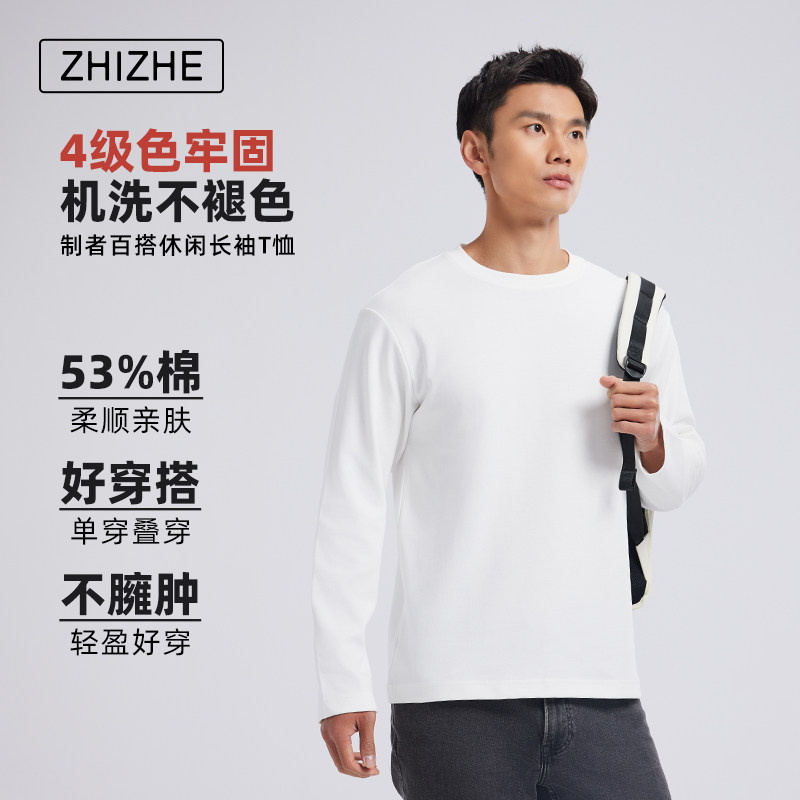 天猫制者长袖T恤男套头衫秋冬季新款圆领休闲百搭纯色内搭打底衫上衣