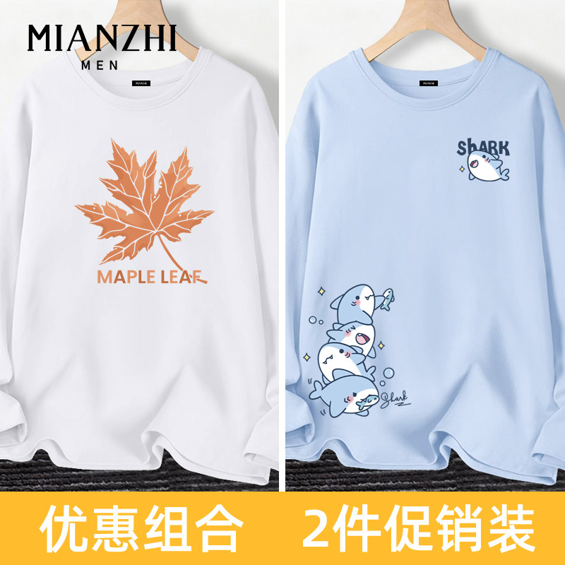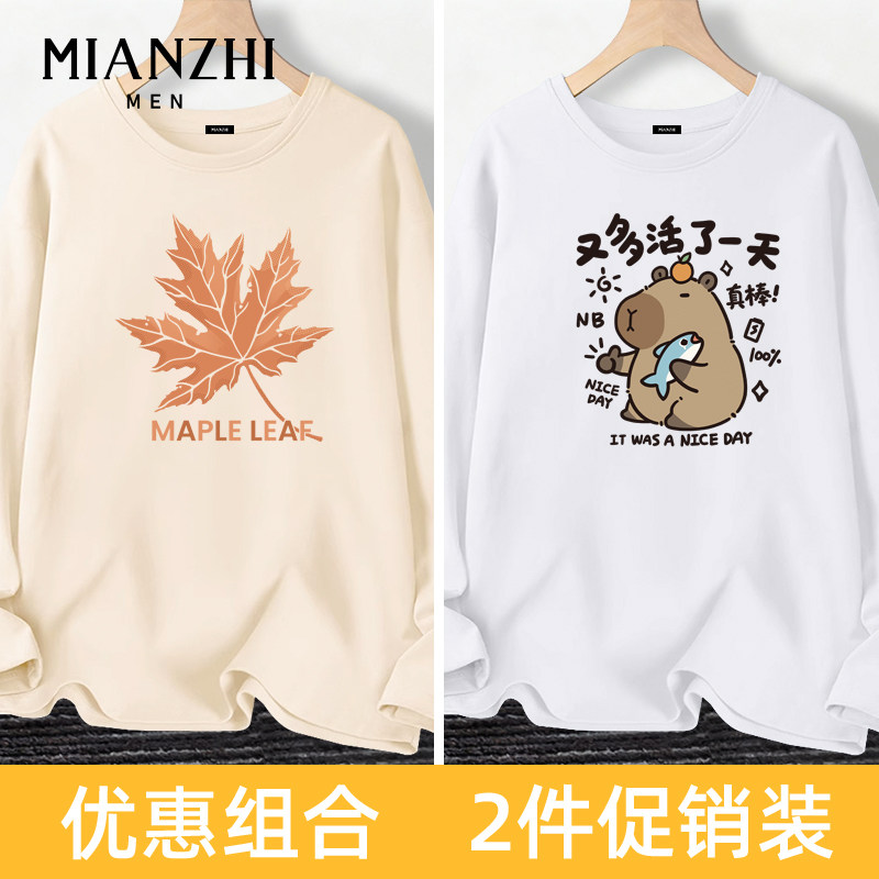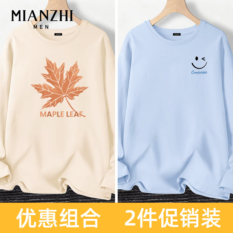 淘宝棉致中国风枫叶纯棉米色长袖男款t恤秋冬宽松青少年潮牌大码内搭