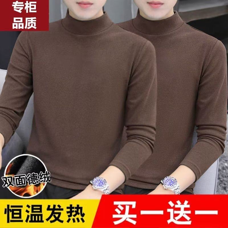 淘宝秋冬男士长袖t恤保暖上衣半高领加绒加厚内衣中领德绒打底衫秋衣