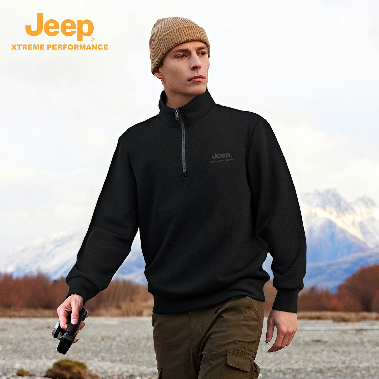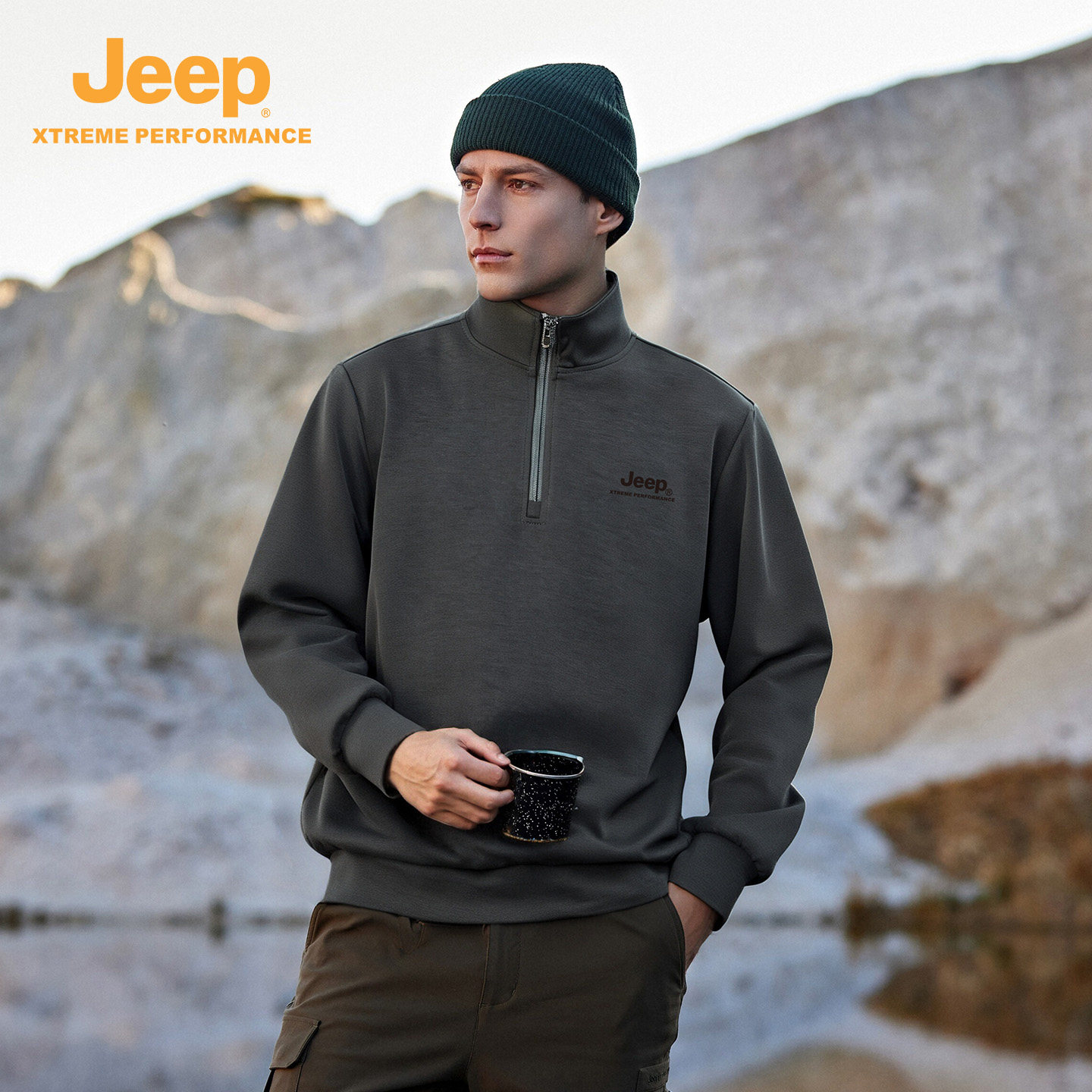 天猫Jeep吉普半拉链卫衣男官方保暖长袖T恤宽松立领户外运动男装秋冬