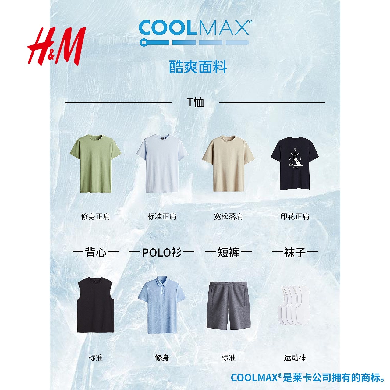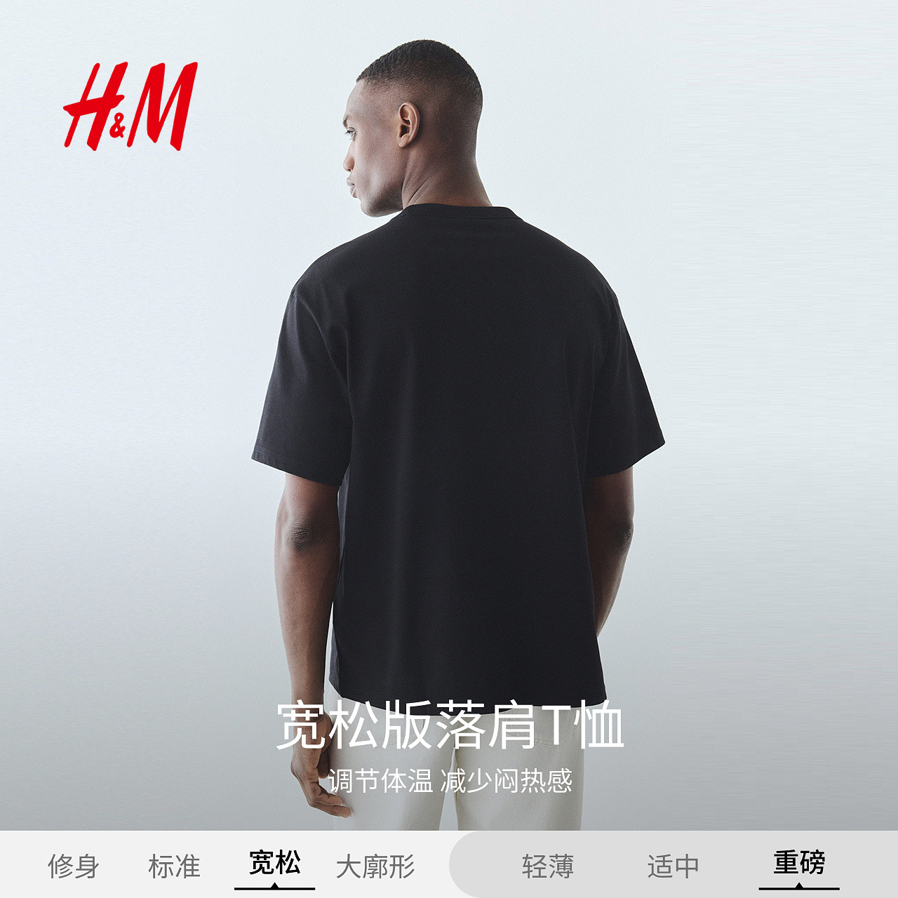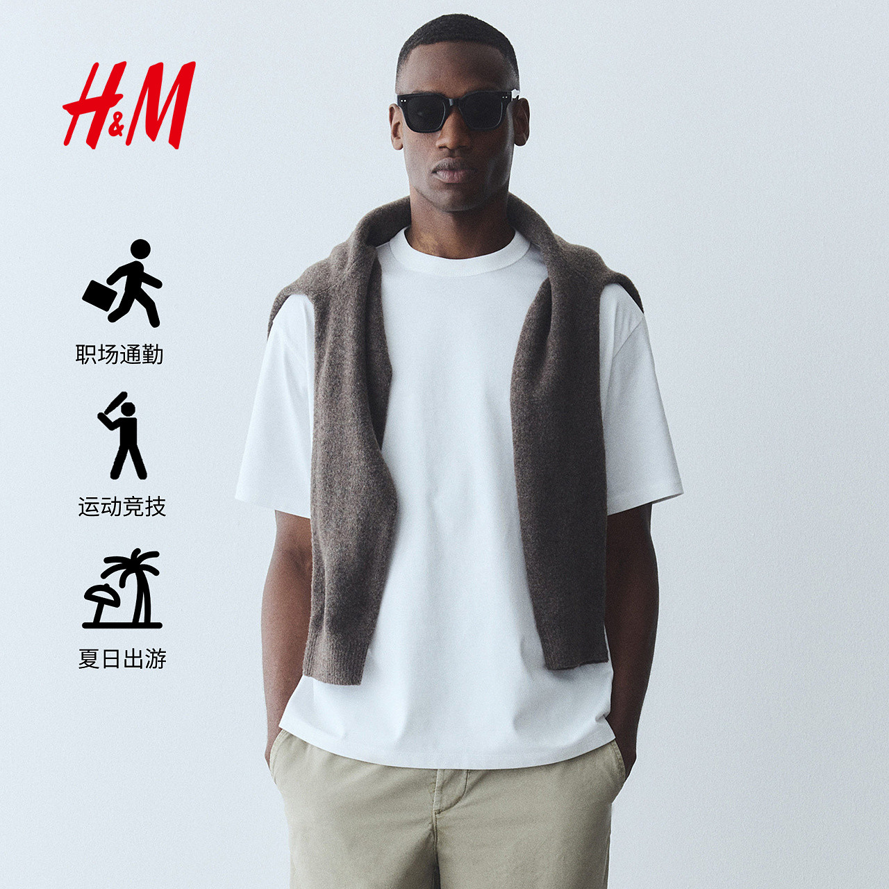 天猫HM男装女装T恤春季凉感COOLMAX®透气重磅宽松情侣装短袖0948441