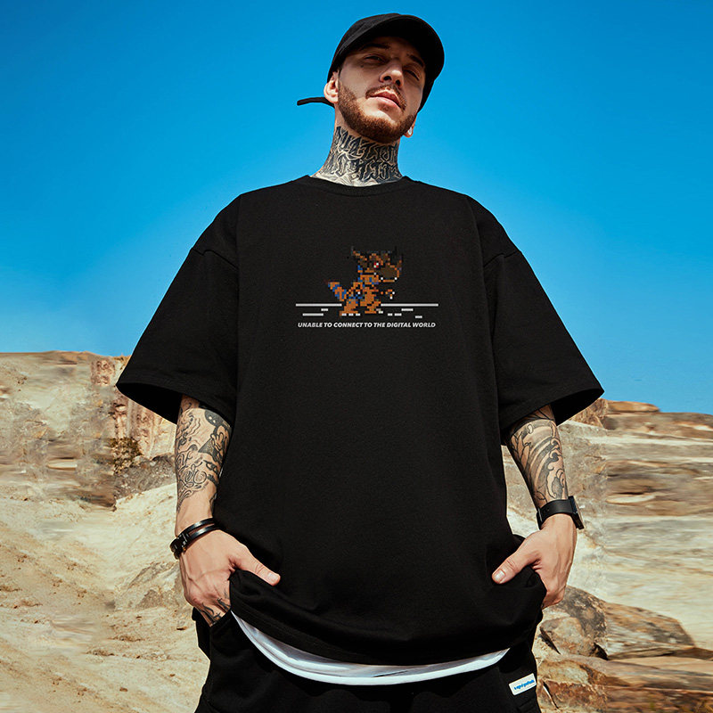 这款摩严重磅潮牌夏季卡通大码半袖男T恤,融合日系简约风格与街头潮流元素,采用高品质纯棉面料,亲肤透气,穿着舒适。宽松版型设计,包容性强,适合多种体型,轻松打造随性慵懒的夏日造型。胸前个性卡通印花,趣味十足,彰显年轻活力与独特品味。纯白色基调百搭易穿,无论是搭配工装裤、束脚裤还是短裤,都能轻松驾驭日常出街、休闲聚会等场合。重磅面料厚实有质感,耐洗耐穿,不易变形起球,是追求舒适与潮流兼具的男士夏季必备单品。