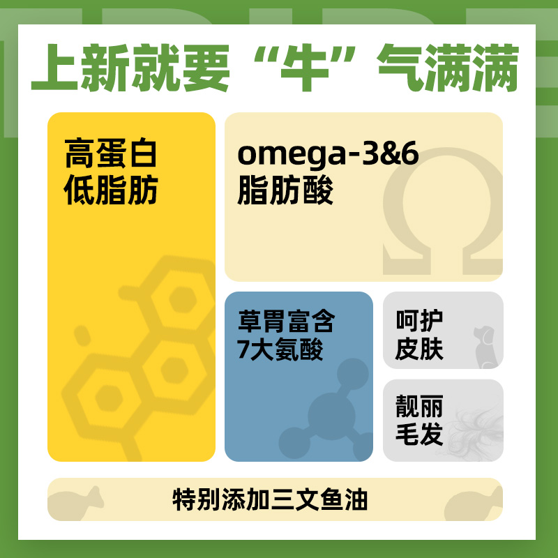 【旺财】它福狗狗全价牛草肚主食罐头,专为成犬与幼犬精心研制,是一款营养均衡的湿粮主粮。采用优质牛草肚为主要原料,富含优质蛋白与天然营养,易消化、好吸收,助力狗狗健康成长。科学配比维生素、矿物质及必需氨基酸,全面满足狗狗日常营养需求。质地细腻,肉香浓郁,可单独喂食或拌入干粮,提升食欲。不含人工添加剂、防腐剂,安全健康。无论是挑食宝宝还是成长中的幼犬,都能享受美味与营养的双重呵护。【旺财】它福,用真心守护爱犬每一餐,让健康从“胃”开始。