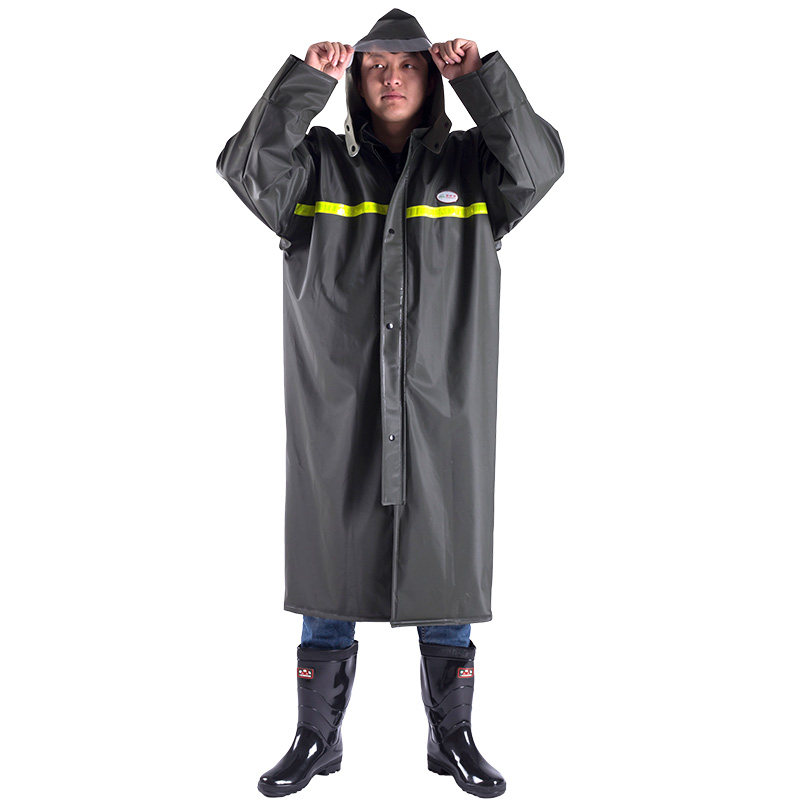 这款加长男士防暴雨防汛雨衣,专为户外、物业、环卫等高强度作业环境设计。采用优质牛津布双层防水面料,加厚处理,有效抵御暴雨侵袭,确保全身干爽。加长风衣式设计覆盖至小腿,提供全方位防护,避免雨水渗透。高领口搭配可调节帽檐,增强头部和颈部防雨效果。前襟双重拉链加防雨门襟,密封性强,抗风防泼水。袖口松紧收口,贴合手腕,防止雨水倒灌。背部透气孔设计,兼顾防水与舒适性。反光条点缀,提升夜间作业安全性。结实耐用,轻便易携,是防汛抢险、户外作业的理想防护装备。
