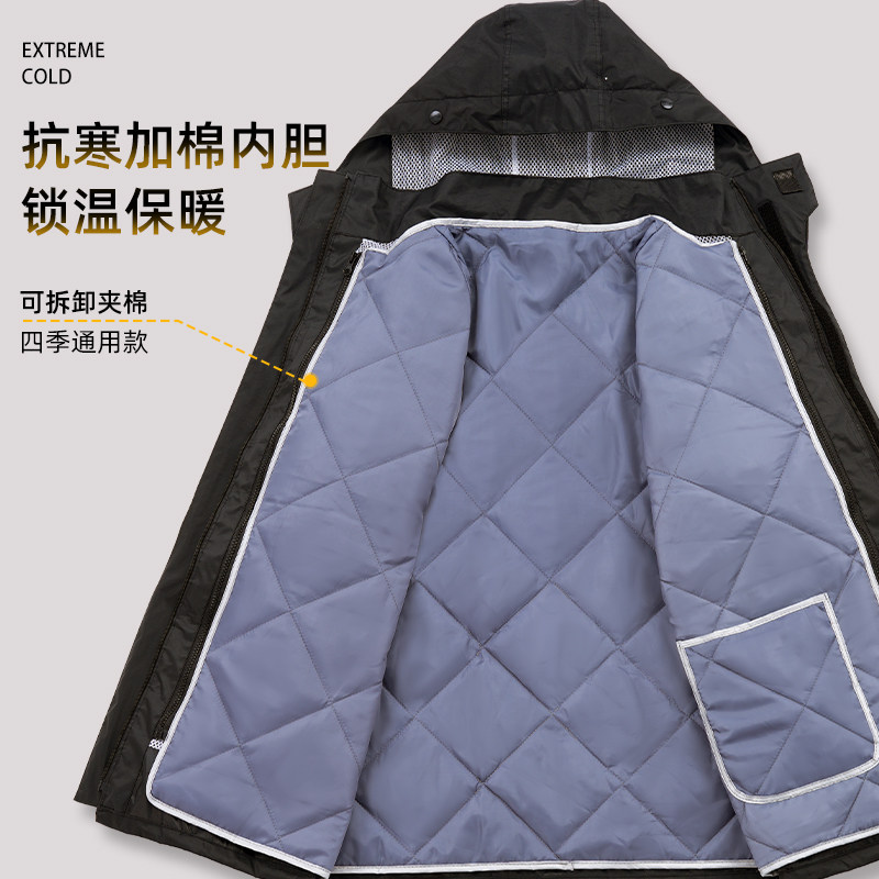 这款冬季加绒外卖骑手装备加厚雨衣防雨防寒服保暖代驾骑行服分体套装,专为严寒雨雪天气设计,兼顾防风、防水与保暖性能。采用高密度防水面料,有效抵御雨雪侵袭,内里加绒加厚,锁住体温,持久保暖。分体式设计灵活便捷,上衣防风立领、可调节袖口,下装防风裤脚,全方位防护。多口袋设计方便携带手机、订单等物品,反光条增强夜间骑行安全。适用于外卖骑手、代驾司机等户外工作者,在恶劣天气下仍能保持干爽温暖,提升工作效率与舒适度,是冬季户外骑行的理想装备。