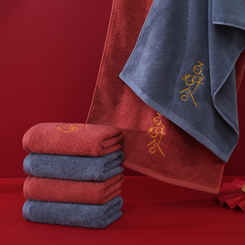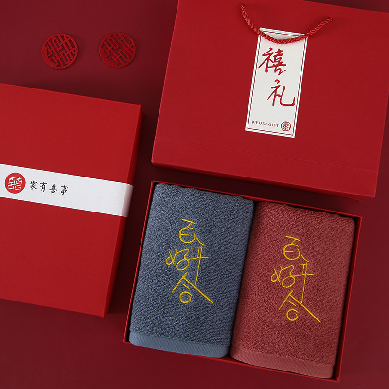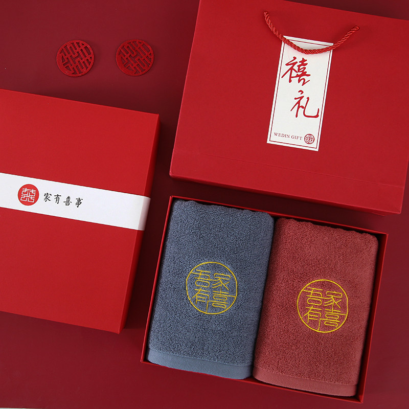淘宝情侣结婚婚庆喜事纯棉高档喜字红毛巾一对礼盒装陪嫁回礼伴手礼