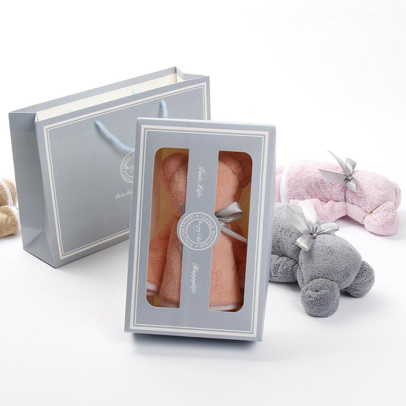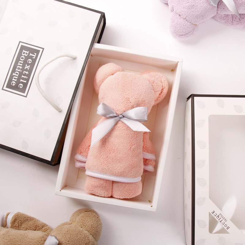 淘宝加厚吸水单条毛巾礼盒小熊伴手礼可爱珊瑚绒柔软速干礼品定制logo