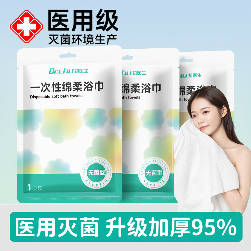 天猫EO灭菌一次性浴巾干毛巾独立包装加厚加大纯棉旅行单独无菌旅行用