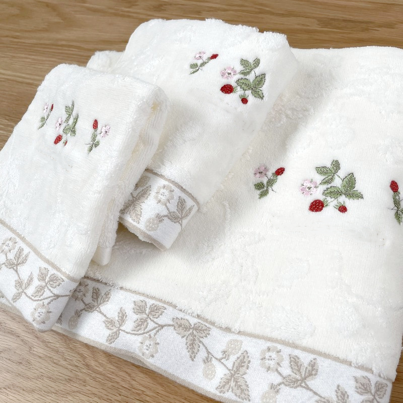 淘宝T6高质5D野草莓玫瑰刺绣毛巾浴巾纯棉出霓虹原旦浴巾柔软吸水