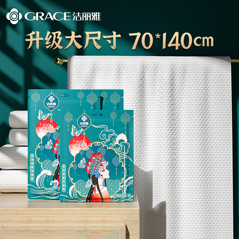 天猫10条洁丽雅一次性浴巾毛巾压缩旅行用品单独包装加大加厚酒店便携