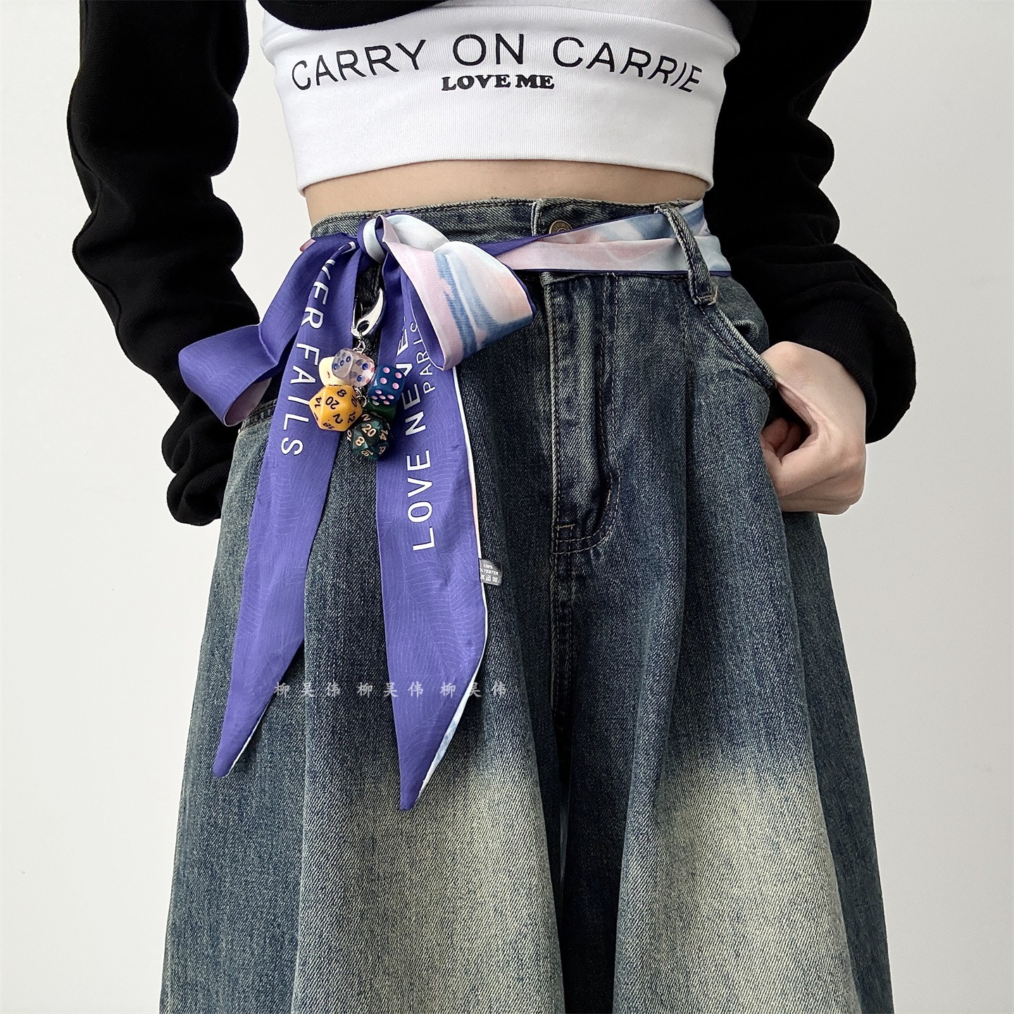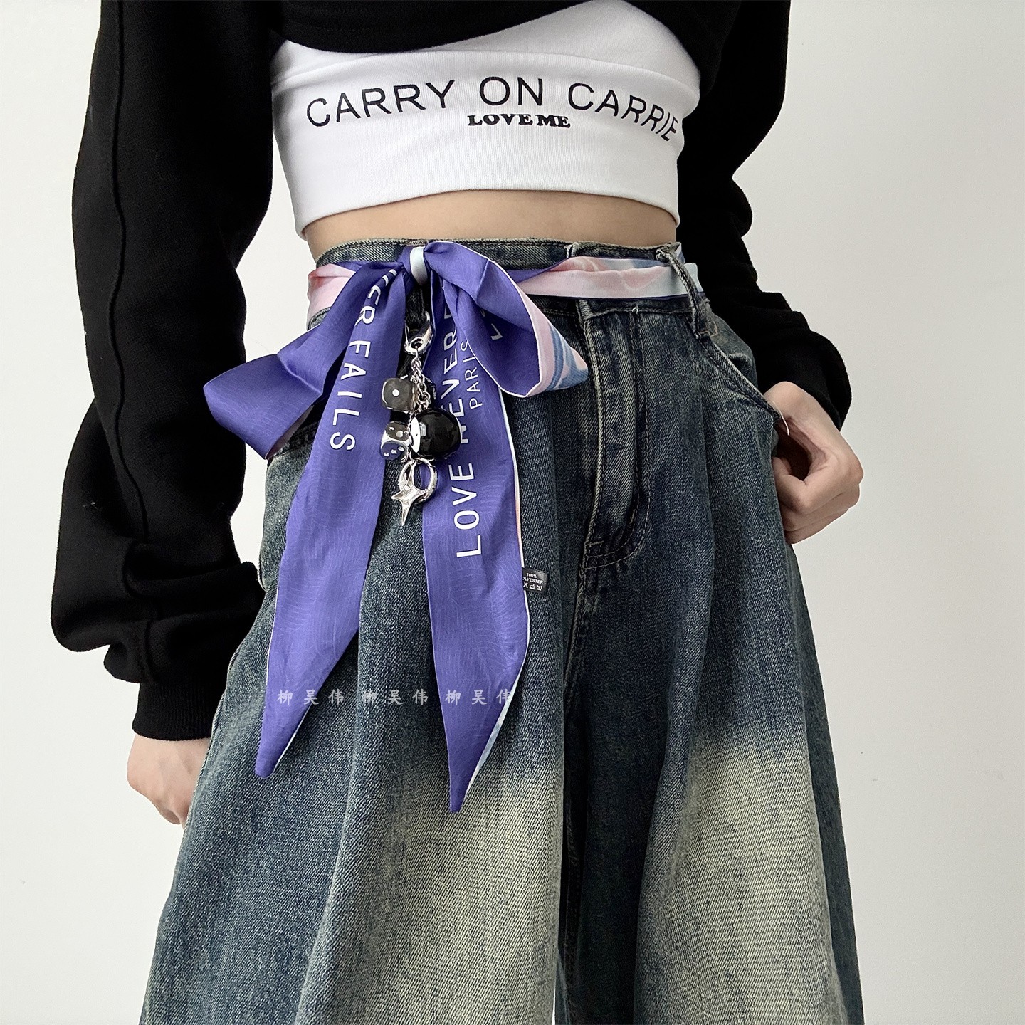 淘宝柳吴伟高级感长条丝巾腰带配牛仔裤皮带女款珍珠裤链配饰辣妹y2k