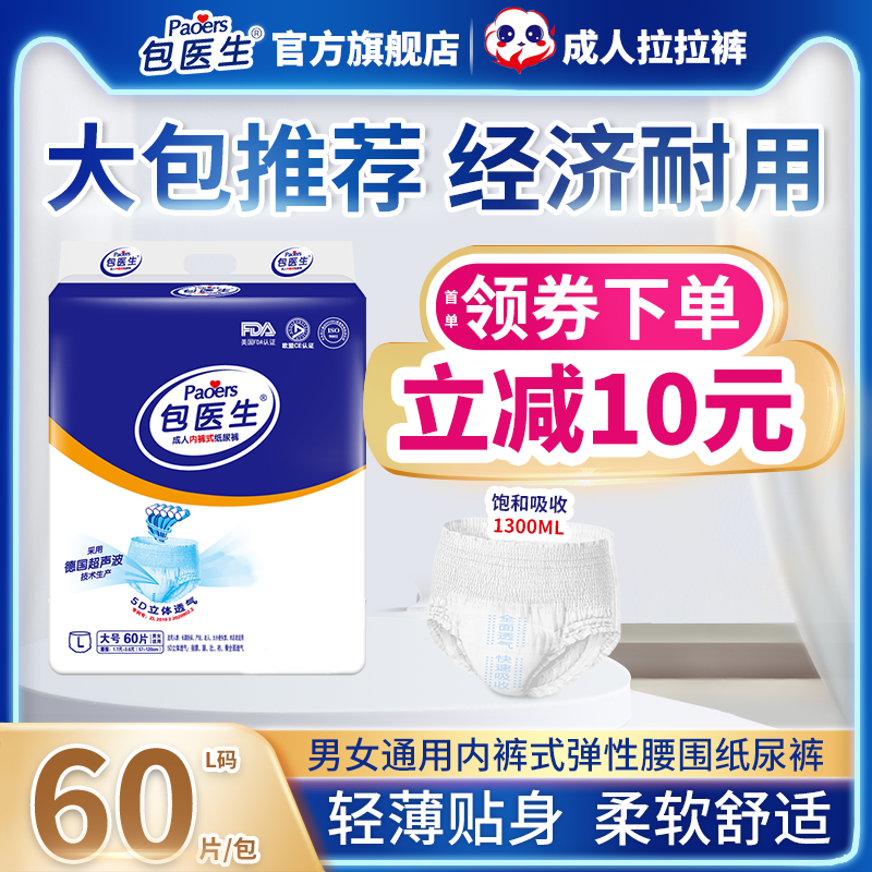 天猫包医生成人拉拉裤一次性内裤型纸尿裤男女老人孕妇尿不湿L号60片