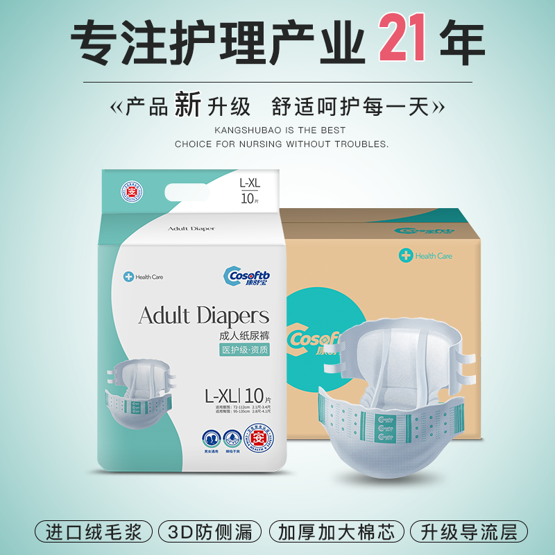 天猫康舒宝成人尿不湿老人用纸尿裤男女老年护理透气XL码箱装非拉拉裤