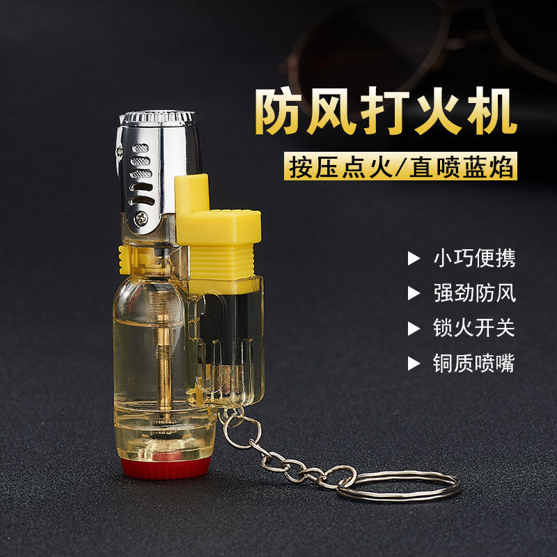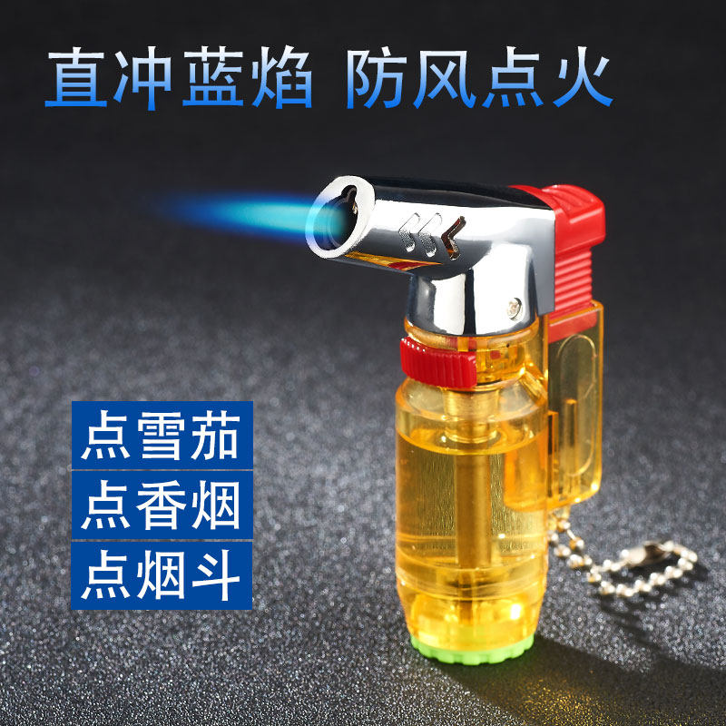 淘创意充气防风打火机三直冲火焰点烟器个性点艾灸雪茄烧塑料用户外