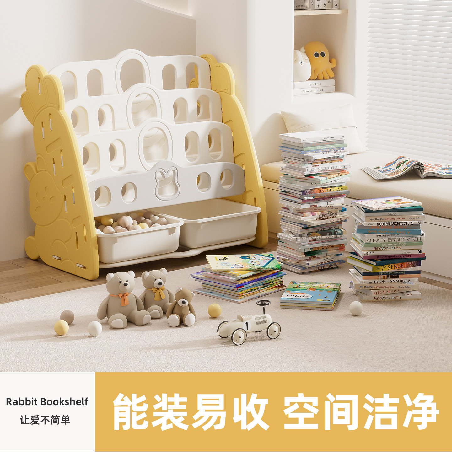 淘也雅置地儿童书架收纳架一体宝宝绘本架落地书柜置物架玩具收纳柜