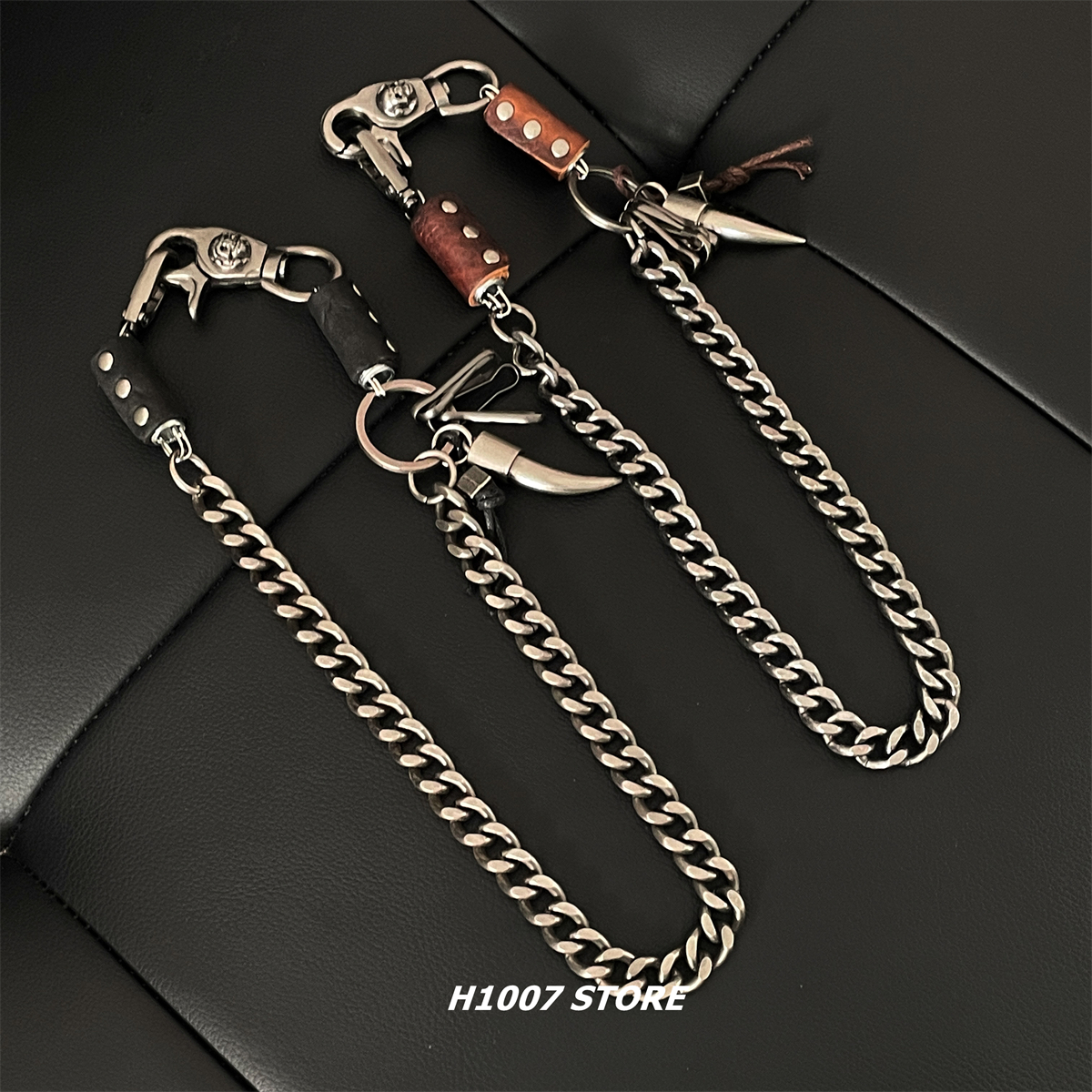 小心袖口"Vintage暗黑opium黑银做旧玛瑙裤链小众设计款裤链配饰