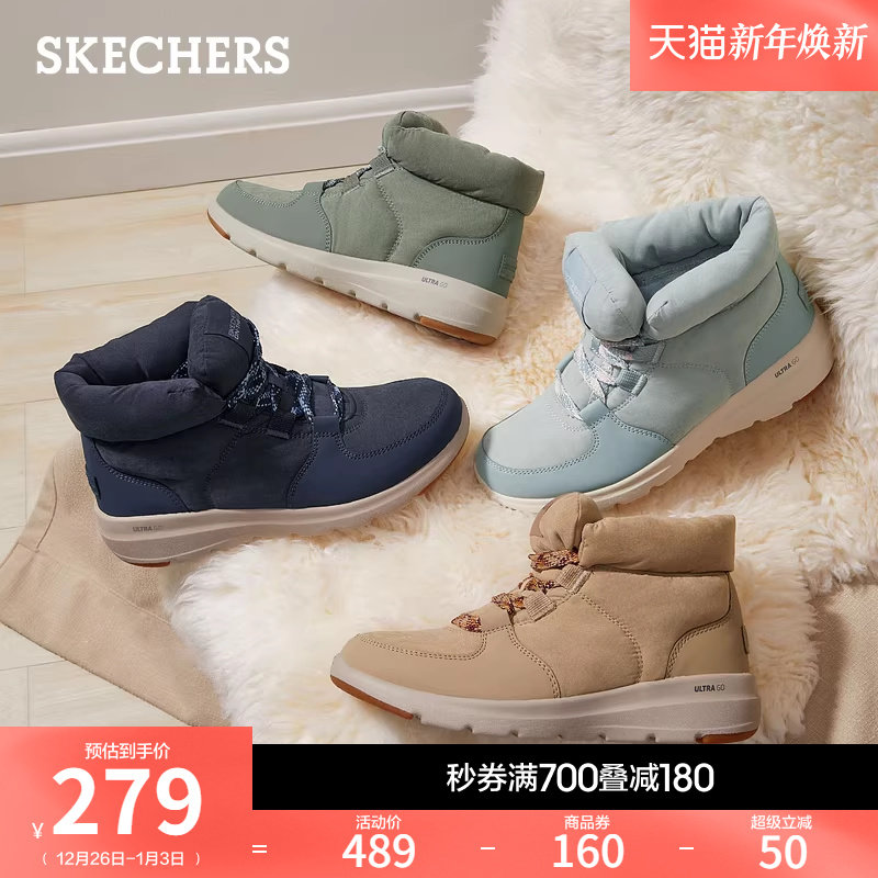 天猫斯凯奇面包鞋|加绒保暖雪地靴女棉靴冬靴高帮棉鞋厚底内增高短靴