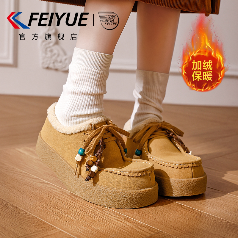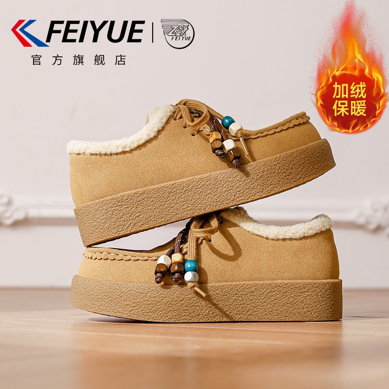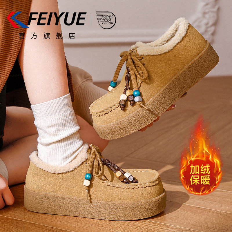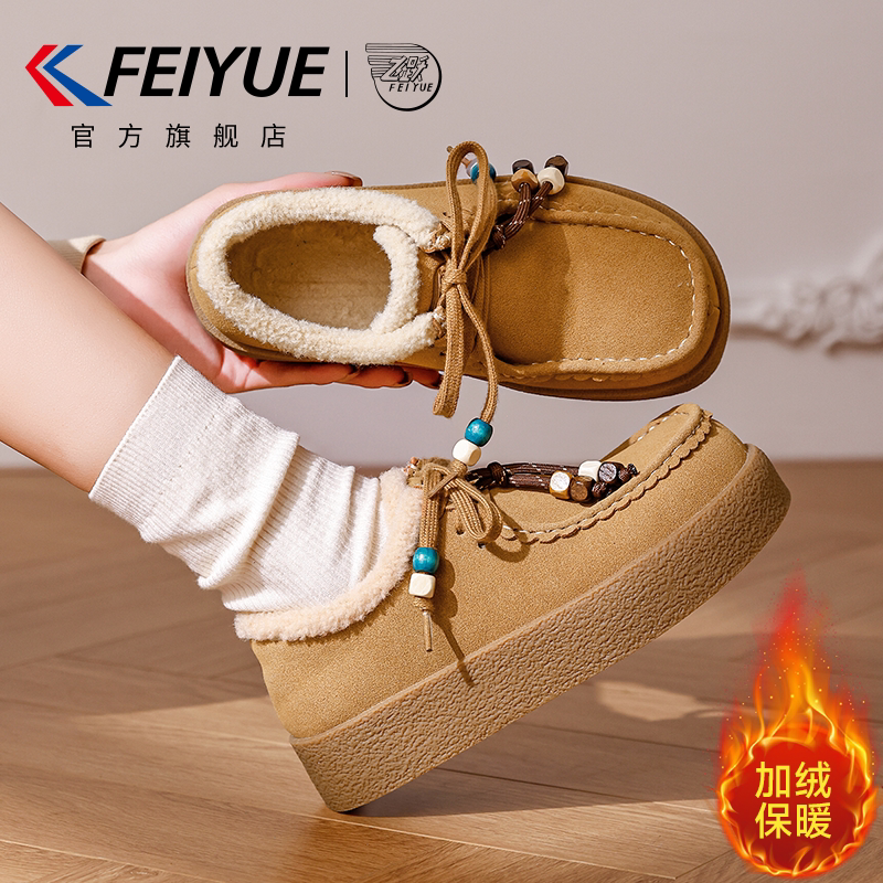 天猫feiyue/飞跃女鞋加绒勃肯鞋2026冬季新款加厚保暖棉鞋厚底雪地靴