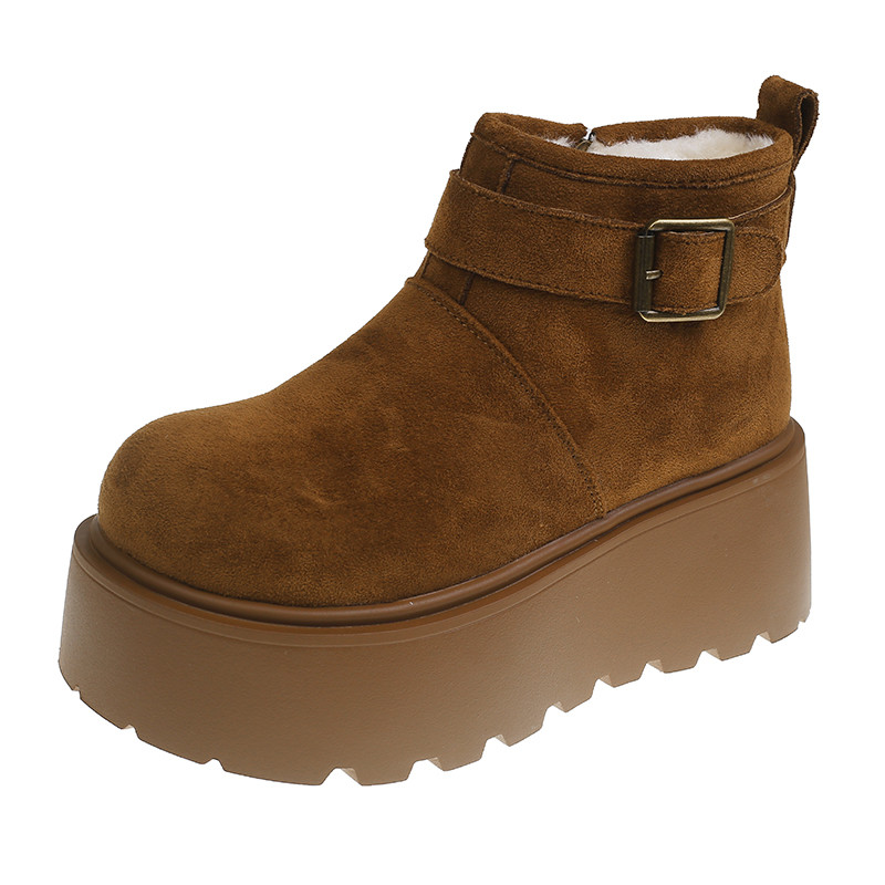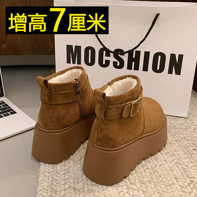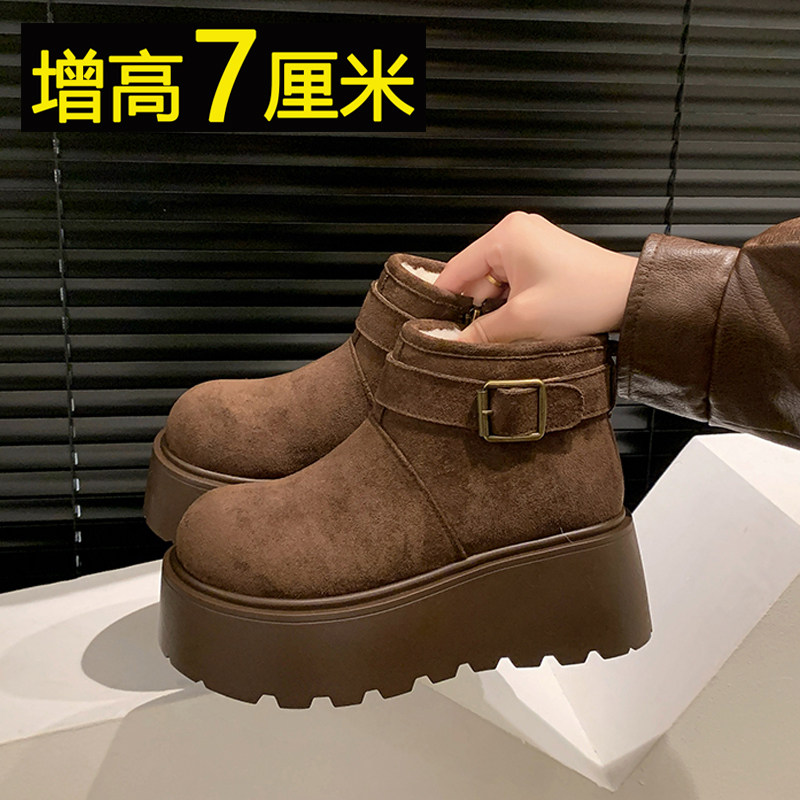 淘宝欧货翻毛皮厚底马丁靴女2025冬季爆款小个子增高百搭勃肯鞋雪地靴
