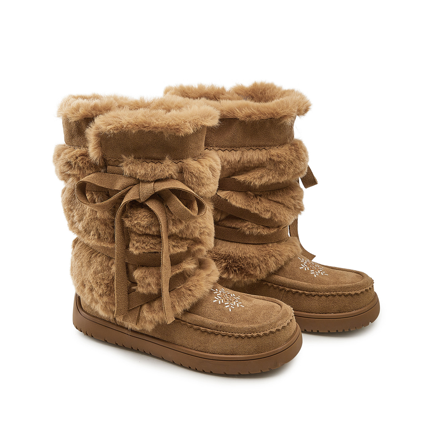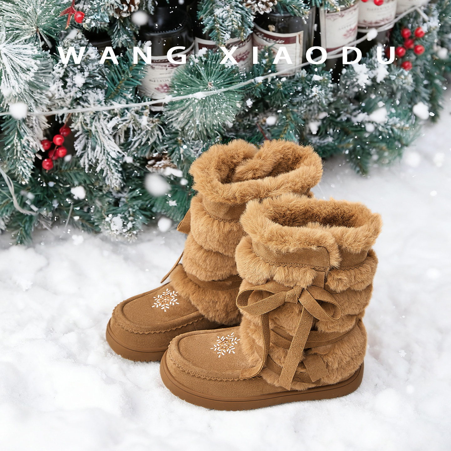淘宝原创【王小毒】雪花漫舞●3cm绒面雪地靴女冬毛毛保暖勃肯长靴