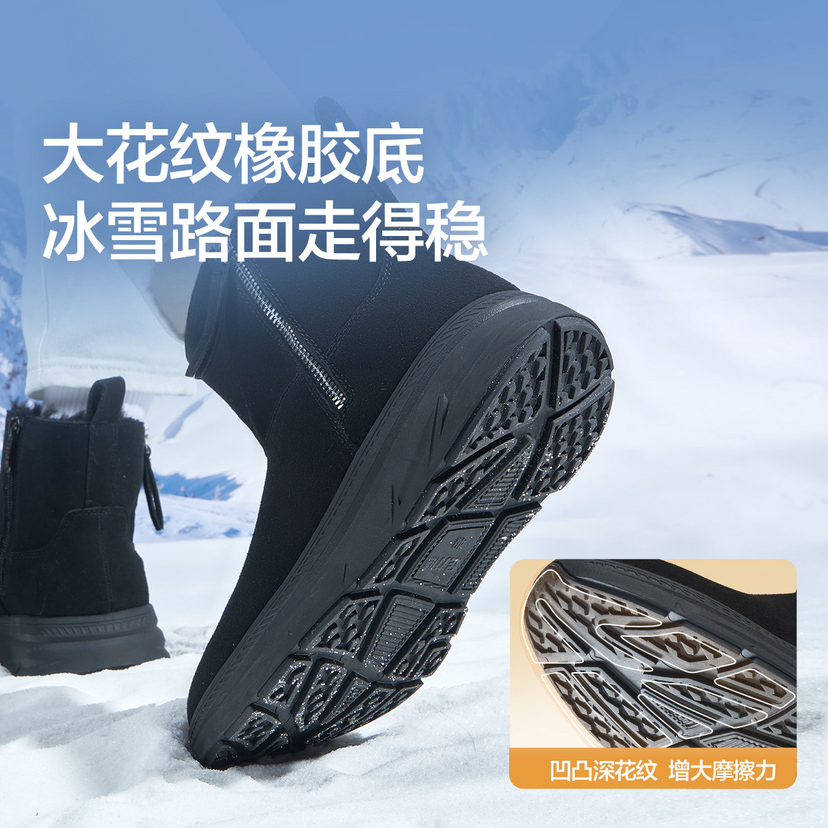 天猫足力健女鞋正品妈妈加绒雪地靴冬季厚底防滑加厚保暖棉鞋短筒靴子