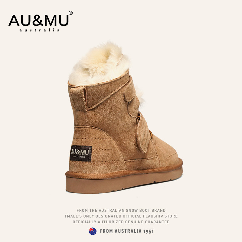 AUMU澳洲中筒雪地靴 真羊皮毛一体 2025新款冬季女加厚绒防水防滑