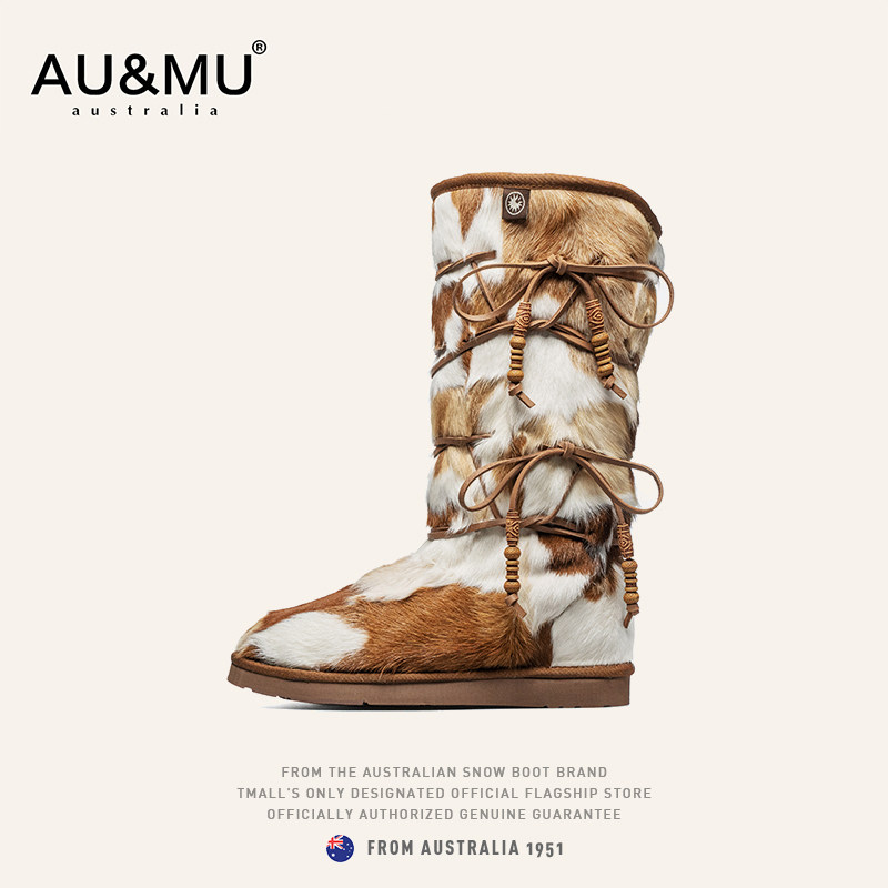 天猫《 一雪前耻》马丽同款AUMU澳洲高筒雪地靴皮毛一体东北防滑男女