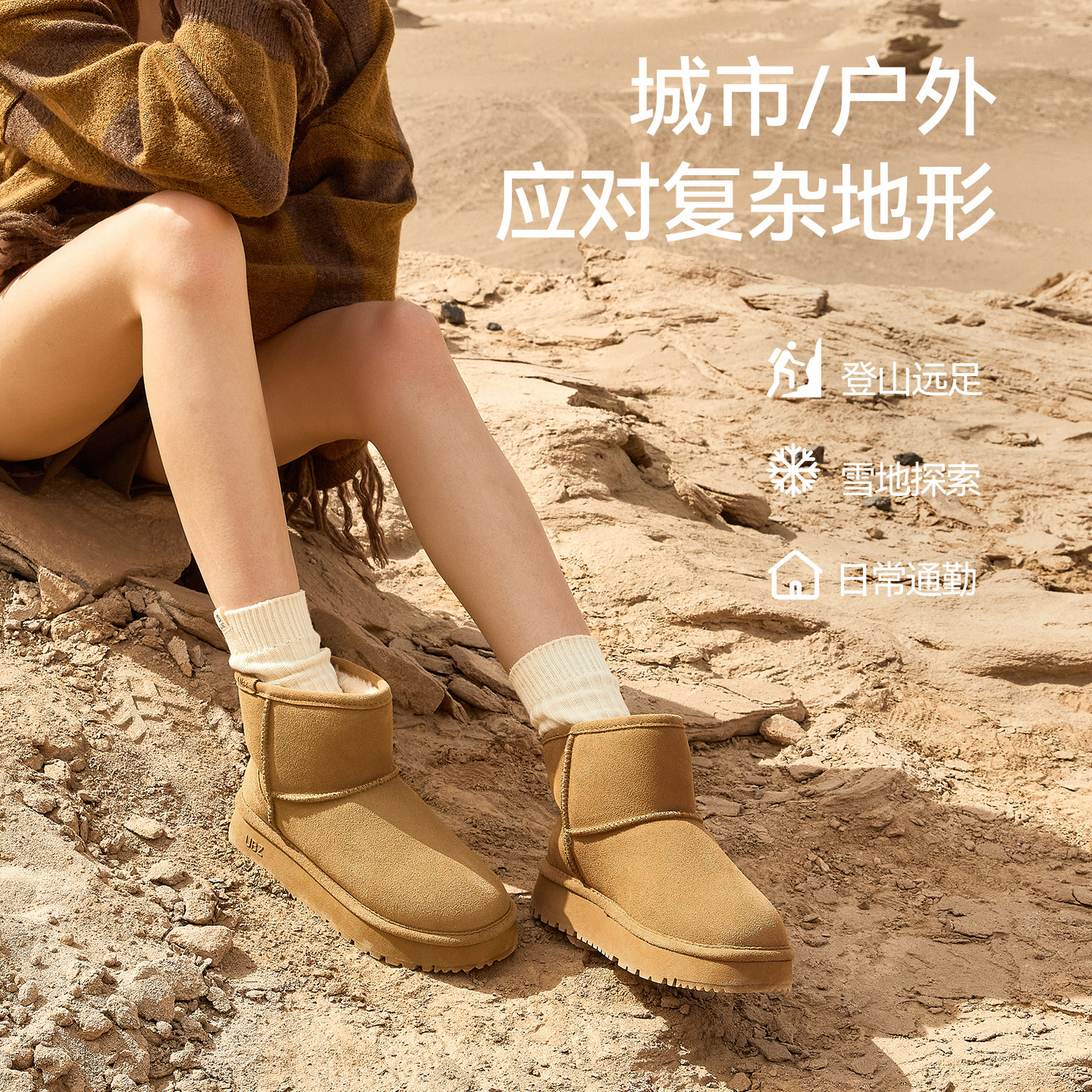 淘3352一粒扣雪地靴女桑坡经典款短筒低帮羊皮毛一体保暖加绒短靴
