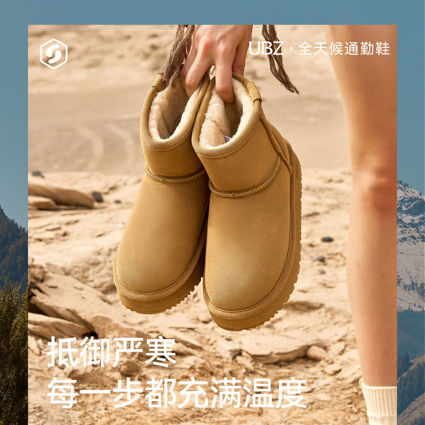 天猫UBZ 防水厚底增高雪地靴女2025冬新款加绒加厚防滑保暖东北大棉鞋