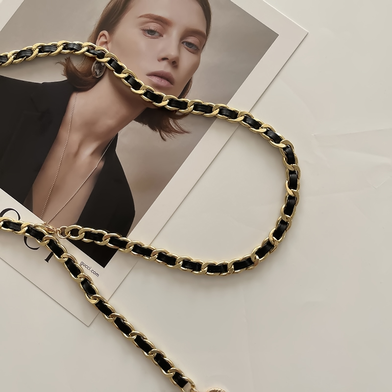 淘宝金属链条腰带黑色编织装饰皮带女复古金色腰链ins小香风网红裤链