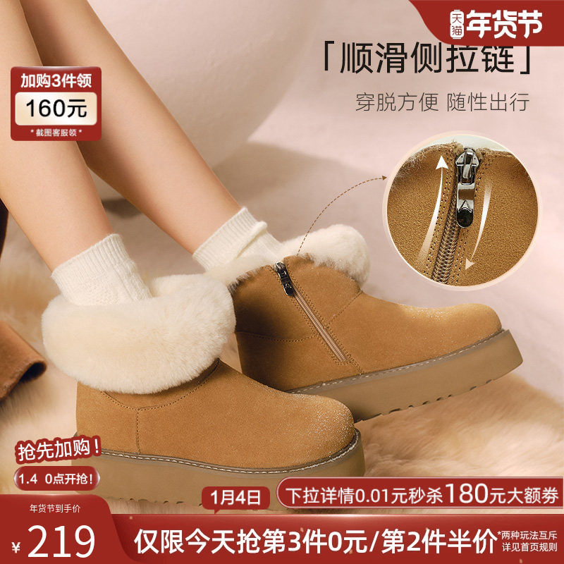 天达芙妮厚底雪地靴女款2025冬季新款加绒保暖短靴时尚休闲毛毛棉鞋