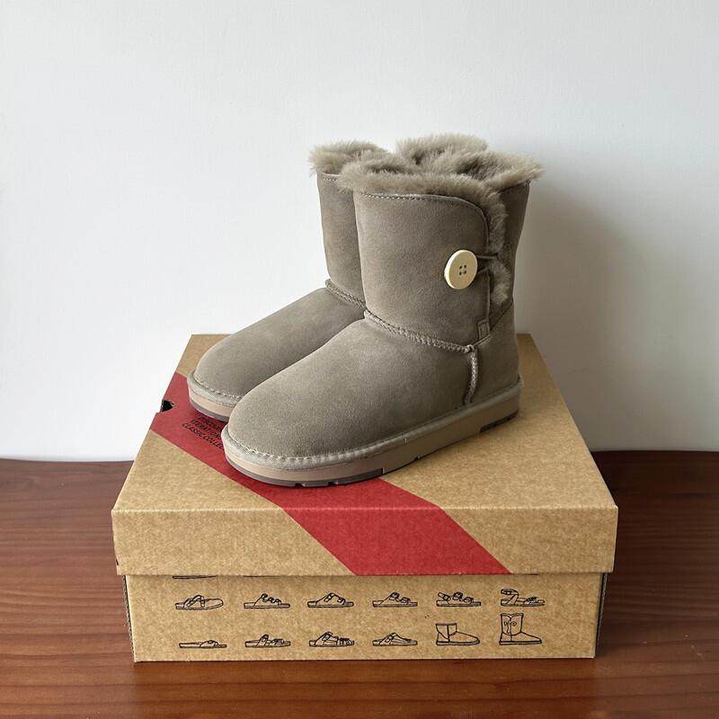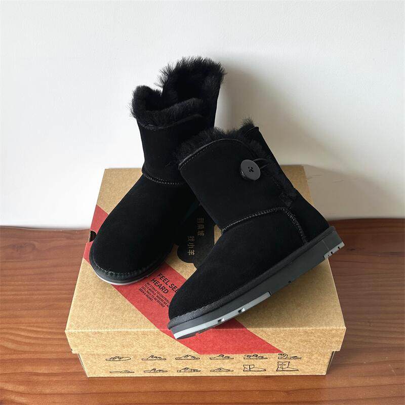 淘宝河南桑坡羊皮毛一体真皮羊毛木扣雪地靴女冬季中筒靴加厚防滑棉鞋