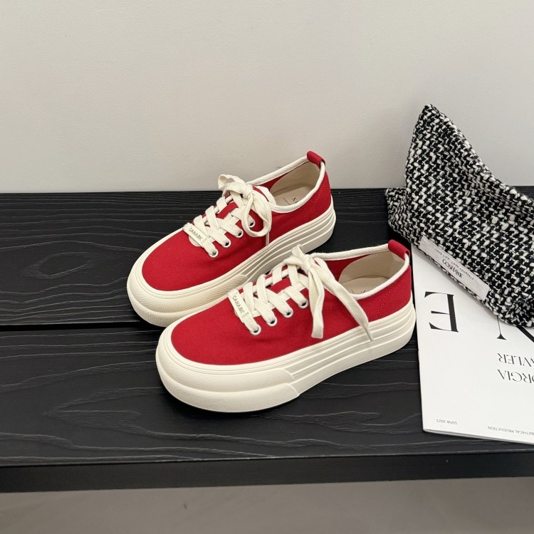 淘宝厚底帆布鞋2025春系带时尚休闲鞋经典款彩色板鞋百搭潮牌青年女鞋